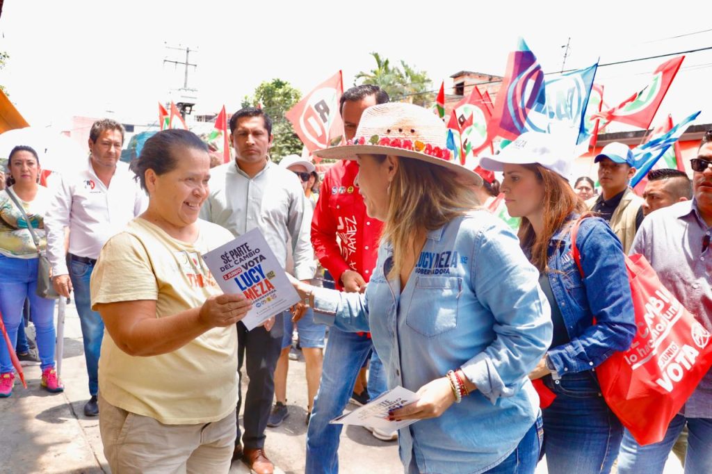 La candidata del cambio fue recibida con abrazos y muestras de cariño de los vecinos de la colonia, quienes le aseguraron que el próximo dos de junio abarrotarán las urnas para votar por Lucy Meza. “Usted tiene que ser nuestra gobernadora para que todo mejore en Morelos”, comentaron.