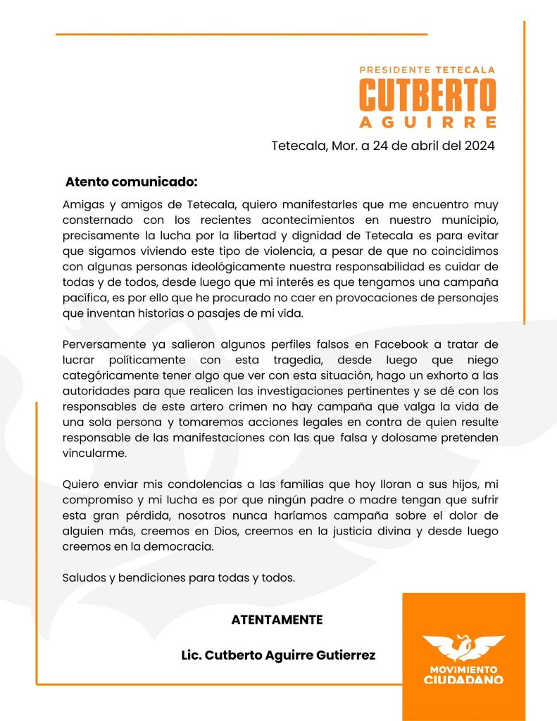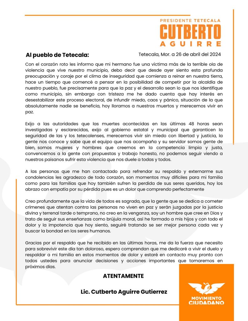 Ayer mataron tres empleados del Ayuntamiento. Dicen que por órdenes de Cutberto, (candidato mc a alcaldía). Y hoy mataron al hermano de Cutberto. Sabemos que este es el jefe de plaza en Tetecala y es el marido de Luz Dary.