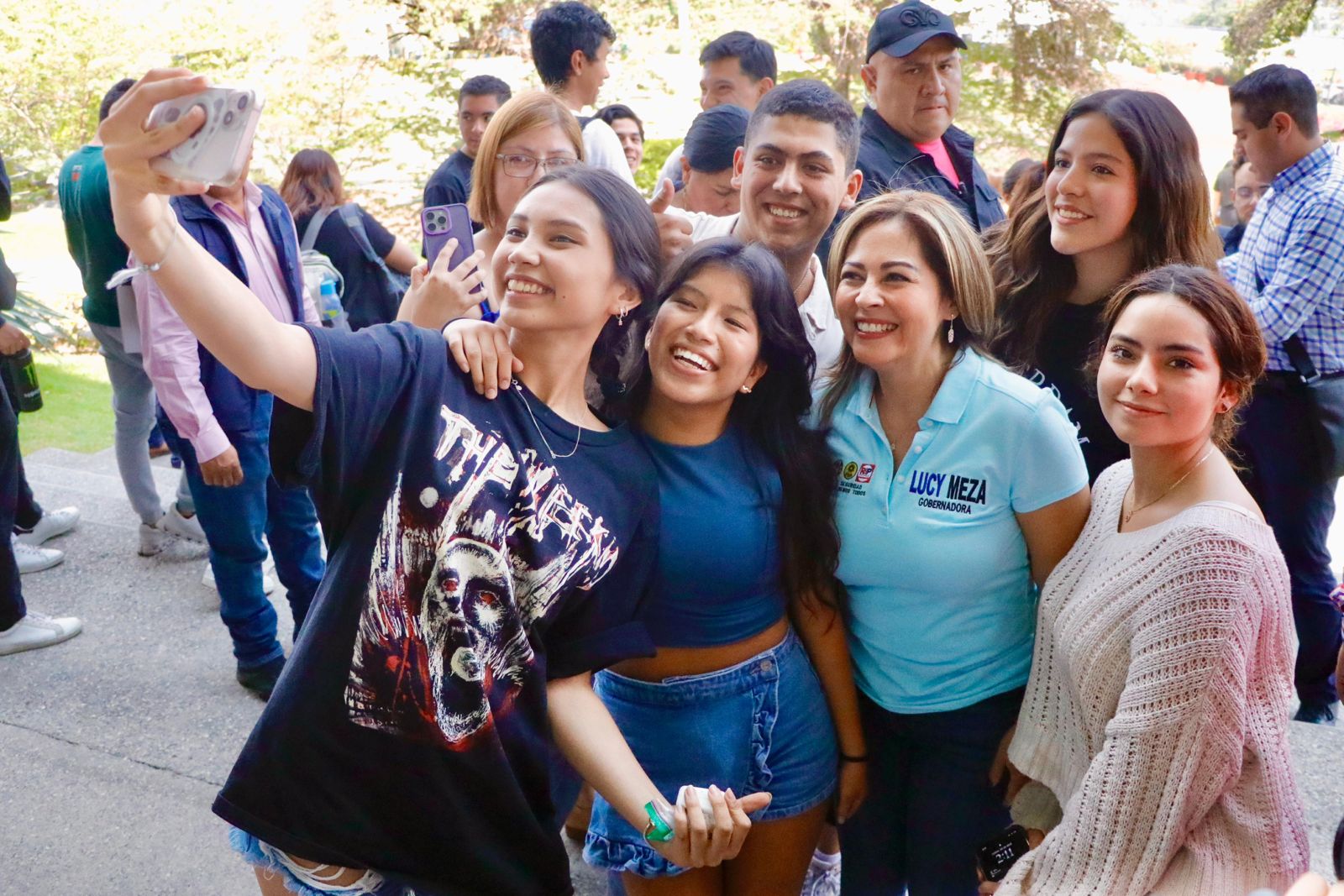 La candidata del cambio, Lucy Meza afirmó: «Vamos a hacer todo lo que está en nuestras manos para regresarle a los morelenses opciones, no solo de esparcimiento, sino para dejarles un estado donde encuentren trabajo, donde puedan emprender, donde puedan desarrollarse libremente sin miedo.»Consciente de que la principal problemática, no sólo para este grupo, sino para la sociedad morelense en general, es la inseguridad, la candidata del cambio se comprometió a generar un cambio radical en la gestión de seguridad, con un enfoque firme y humano para devolver la paz a nuestro estado.