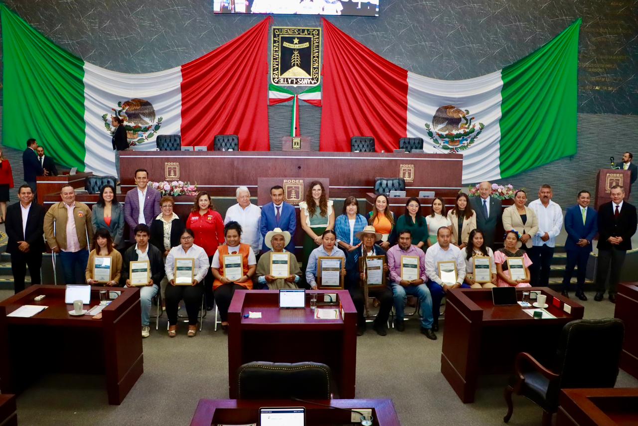 En el marco de una Sesión Solemne en el Congreso del Estado, la diputada Tania Valentina Rodríguez Ruiz, coordinadora del Grupo Parlamentario del PT, participó en la entrega de la Presea Quetzalcóatl 2026, galardón que reconoce la defensa de los derechos y la cultura de los pueblos indígenas.