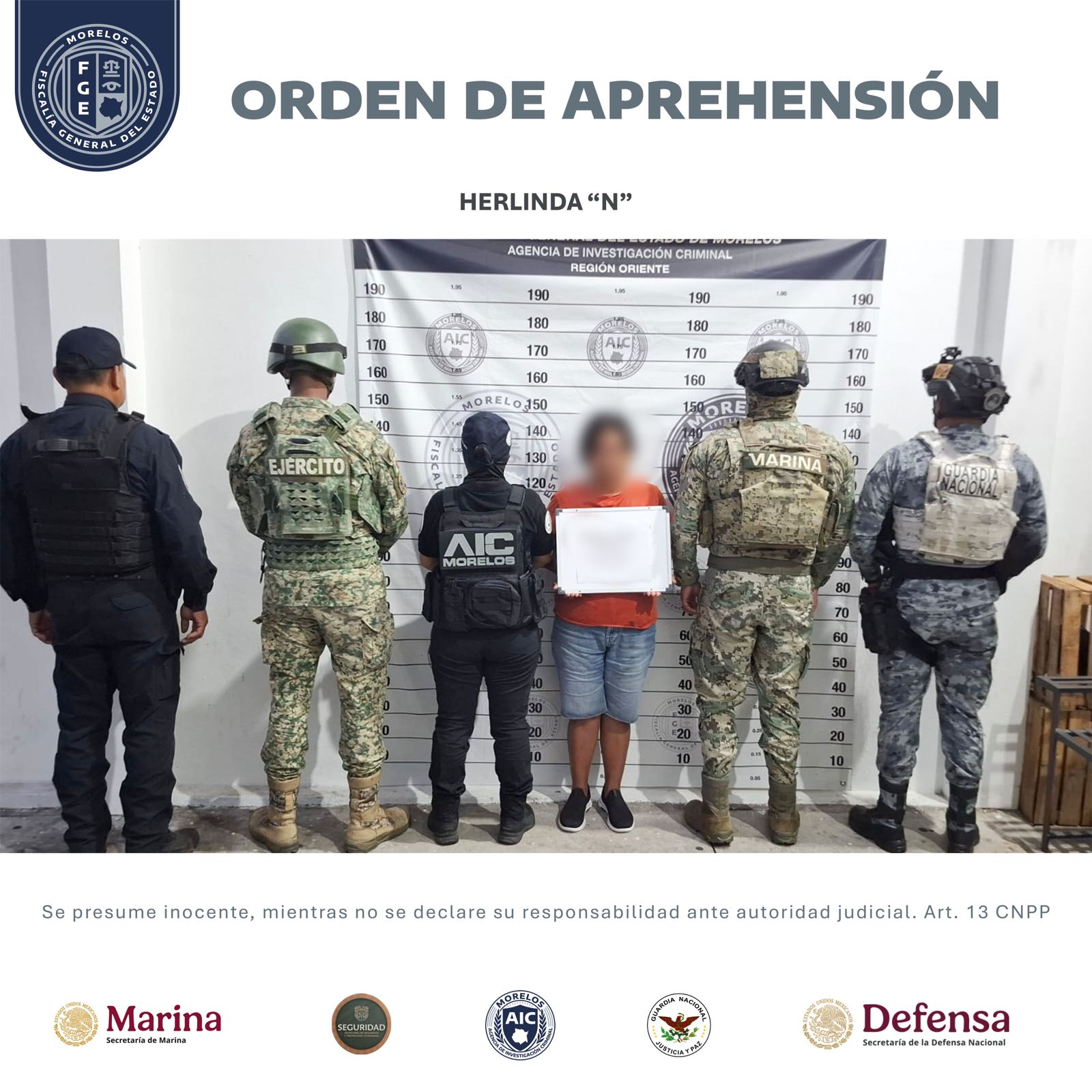 Elementos de la Agencia de Investigación Criminal (AIC) cumplimentaron dos órdenes de aprehensión en contra de una mujer y un hombre por su probable responsabilidad en hechos delictivos en perjuicio de Brenda Kelly. El operativo contó con apoyo de personal de la Secretaría de Seguridad y Protección Ciudadana (SSPC) Morelos, Secretaría de la Defensa Nacional (Defensa), Marina y Guardia Nacional (GN), como parte de las acciones de trabajo interinstitucional de la Mesa de Coordinación Estatal para la Construcción de Paz y Seguridad.